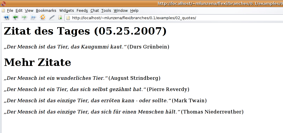 Im folgenden wird nun die Zitatensammlung aus Beispiel 2 in ein Layout eingebettet.