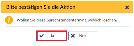 um die Aktion zu bestätigen. Wenn mindestens ein Termin erfolgreich gelöscht wurde, erscheint eine Systemmeldung.