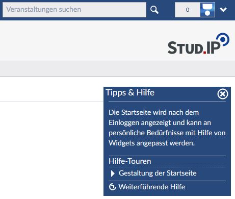 Die Hilfefunktion von Stud.IP dient gleichzeitig als Dokumentation. Sie können also über die Hilfeseiten nicht nur Ihre akuten Probleme lösen, sondern auch den gesamten Funktionsumfang des Programms kennenlernen.