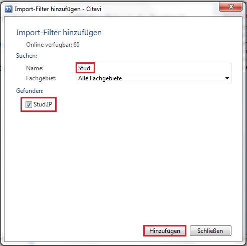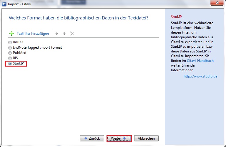Laden Sie zunächst in Citavi den Import-Exportfilter für Stud.IP