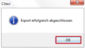 4. Sie bekommen die Meldung, dass der Export erfolgreich abgeschlossen wurde. Schließen Sie das Fenster mit einem Klick auf "OK".