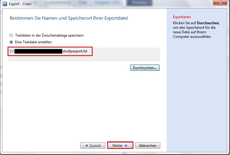 3. Klicken Sie auf "Durchsuchen", um Speicherort und -name für die Exportdatei festzulegen.