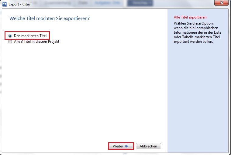 Bestätigen Sie im sich öffnenden Fenster Ihre Titelauswahl und klicken Sie auf "weiter".