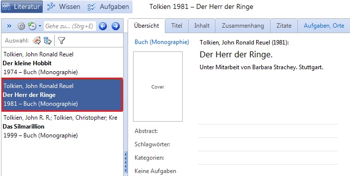 Abschließend sehen Sie noch einmal den Beispieltitel aus Citavi, der exportiert wurde und die Ansicht des Imports in Stud.IP.
