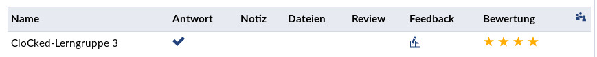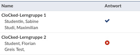 Es ist jederzeit möglich, über die CloCked-Teilnehmerliste zu erfahren, welche Studierenden/Gruppen die Aufgabe beantwortet haben und welche nicht.