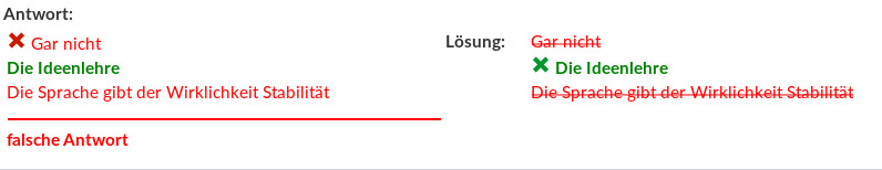 Zur Vollständigkeit hier die Darstellung einer falschen Antwort: