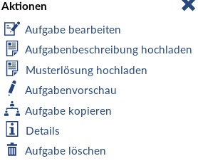 Die Aufgabenbeschreibung und eine eventuelle Musterlösung können Sie über das Aktionsmenü auch als Datei hochladen.