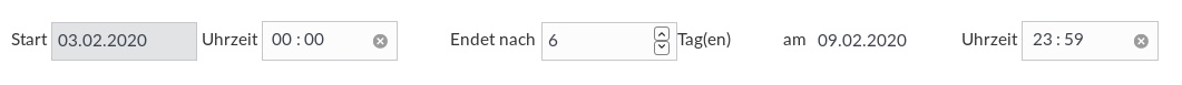 Nachdem die Startaufgabe ausgewählt wurde, legt man das Startdatum (und ggf. Uhrzeit) dieser Aufgabe fest, bestimmt die Laufzeit (in Tagen) und ggf. die Uhrzeit für das Bearbeitungsende.