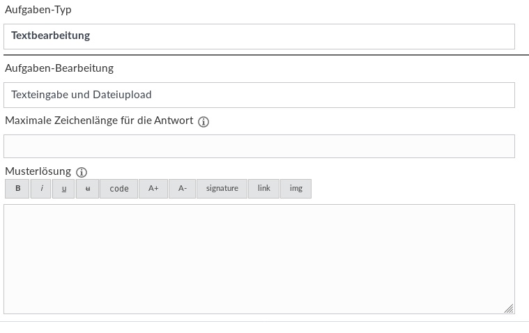 Sie können direkt bei der Bearbeitung einer Textaufgabe eine Musterlösung eingegeben.
