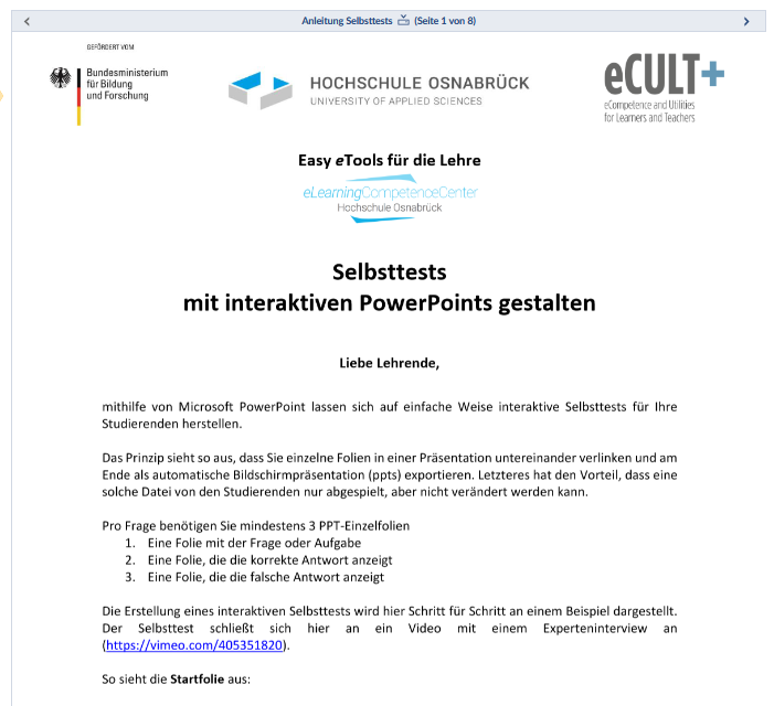 Über die Pfeile links und rechts kann im Dokument vor- und zurückgeblättert werden.