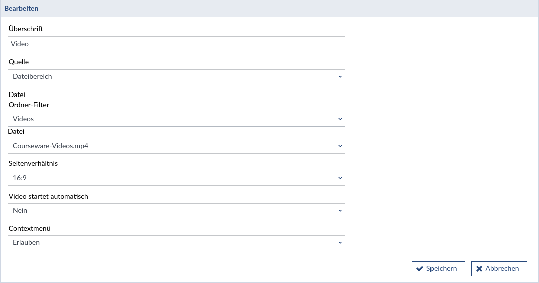 Der Video Block kann Videodateien aus dem Dateibereich oder von einer URL abspielen. Achten Sie bei einer URL bitte darauf, dass diese direkt auf eine Videodatei zeigt, z.B. auf .mp4 endet.