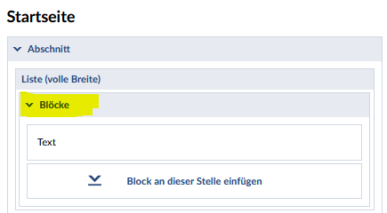 Im oberen Bereich finden Sie jeweils die Abschnitte und dort enthaltenen Blöcke einer Seite. Im unteren Bereich finden Sie weitere Unterseiten (falls vorhanden).