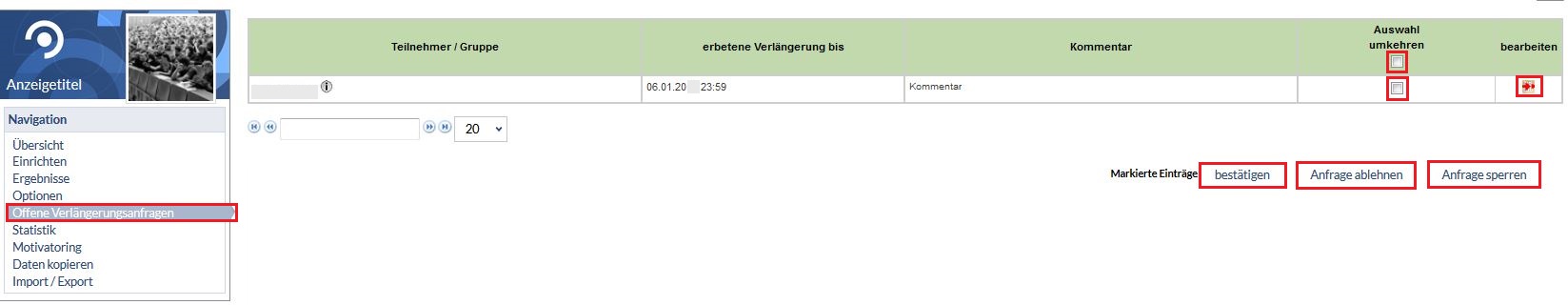 Unter dem neu erschienenen Menüpunkt "Offene Verlängerungsanfragen" befindet sich eine Auflistung aller Anfragen.