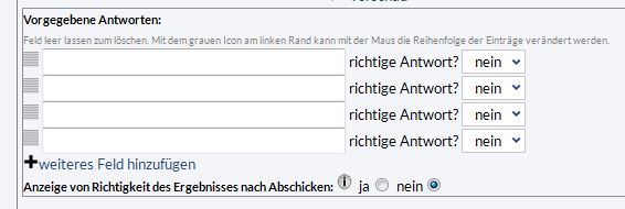 Geben Sie bei Single oder Multiple Choice Fragen, die zu wählenden Antworten an und markieren Sie die richtige Antwort.
