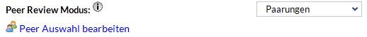 Peer Review: Das Peer Reviewing ist für Studierende eine Möglichkeit, sich gegenseitig bewerten zu können. Einerseits kann dies den Dozenten entlasten, sobald eine sehr große Teilnehmerzahl vorhanden ist, andererseits erhalten alle Teilnehmer Rückmeldungen von ihren Kommilitonen. Für das Peer Reviewing stehen Ihnen vier verschiedene Möglichkeiten zur Verfügung: