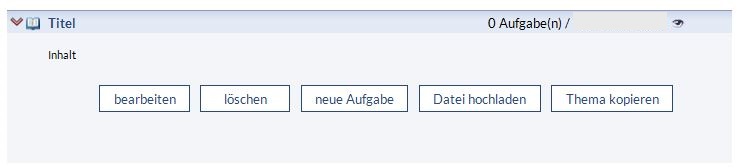 Sie erhalten auf diesen Seiten folgenden Schaltflächen für Ihr Thema: bearbeiten, löschen, neue Aufgabe, Datei hochladen, Thema kopieren.