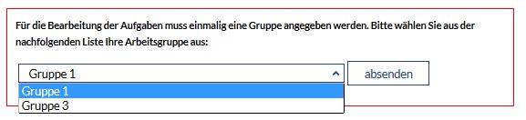 Sollten Sie innerhalb einer Veranstaltung in mehreren Gruppen eingetragen sein, so müssen Sie beim erstmaligen Zugriff auf DoIT eine Gruppe auswählen. Die Eintragung in mehrere Gruppen ist innerhalb des DoIT nicht möglich.