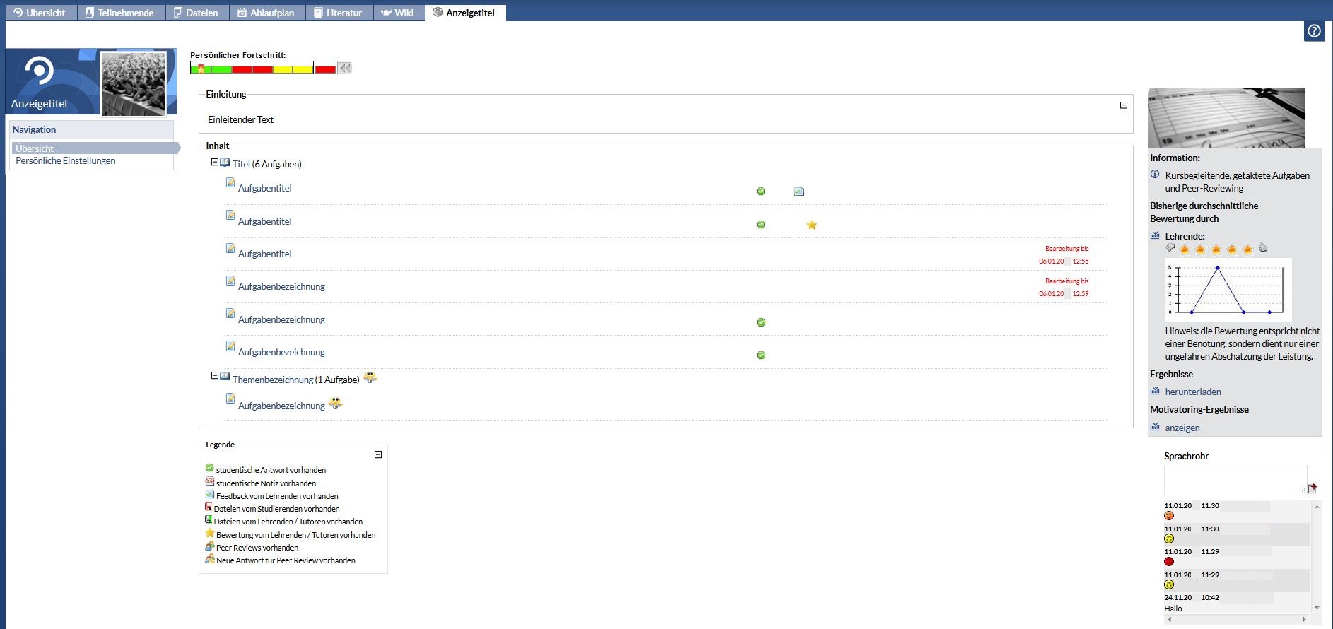 Oben auf der Seite befindet sich für jede Teilnehmende Person der eigene persönliche Fortschrittsverlauf.