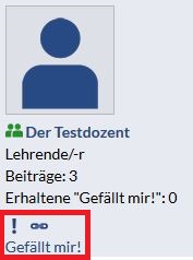 In einem Thema ist es möglich zu sehen, wer die Beiträge erstellt hat. Durch einen Klick auf das Profilbild gelangen Sie zum Profil dieses Nutzers. Unter dem Profibild haben Sie die Möglichkeit die Beiträge zu merken, mit Hilfe des Kettensymbols können Sie direkt zu dem jeweiligen Beitrag springen (nützlich, wenn Sie einen Link zu einem bestimmten Beitrag verschicken möchten) und die Beiträge zu „liken“ (auf „Gefällt mir“ klicken).