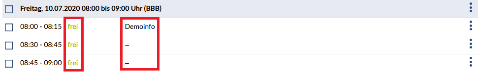 In der Terminübersicht hat sich der Status der ursprünglich gebuchten Termine von
