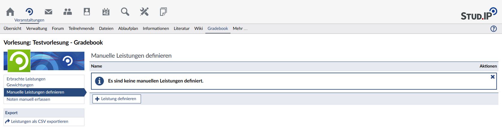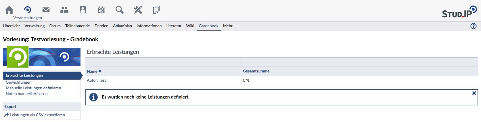 - Wechseln Sie in die Veranstaltung, in der Sie das Gradebook aktivieren wollen.