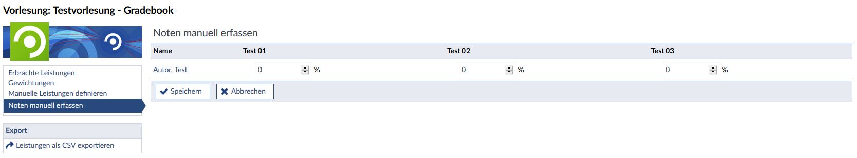 Im dritten Schritt werden die Noten eingetragen. Für jede Leistung wird eine Prozentzahl eingegeben.