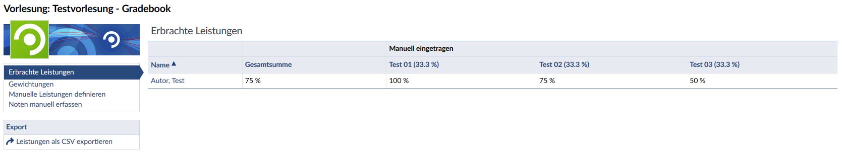 Auf der Seite "Erbrachte Leistungen" können Sie sehen, wie die Gesamtnote Ihrer Teilnehmenden aussieht.
