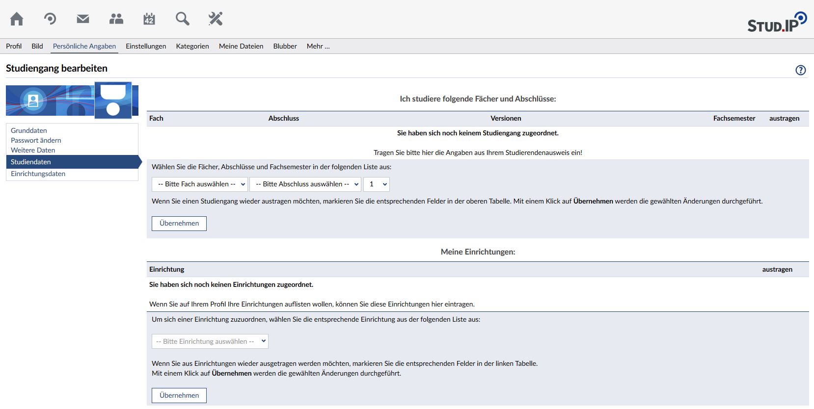 Ihre Studiengangsinformationen werden automatisch übernommen, wenn Sie Ihre studentische Nutzerkennung verwenden.
