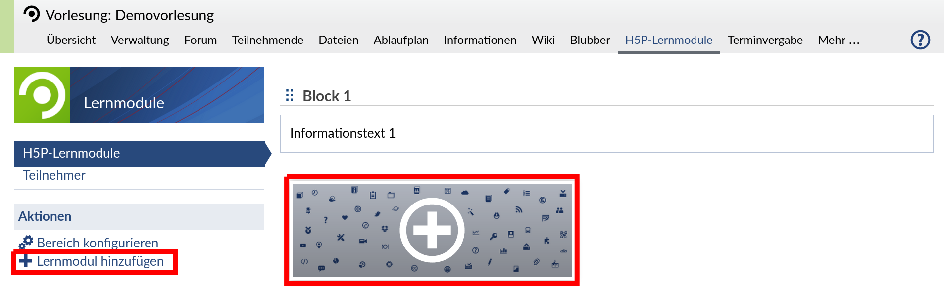 Möchten Sie ein Lernmodul hinzufügen, haben Sie zwei Möglichkeiten dies zu tun: Zum einen können Sie