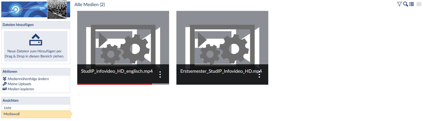 Sie sehen das Lizenzsymbol, die Länge und den Namen der Person, die das Medium hochgeladen hat.