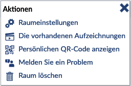 - Raum löschen: löscht den Raum, diese Aktion muss bestätigt werden.