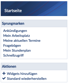 Das Widget kann auf der Stud.IP Startseite hinzugefügt werden.
