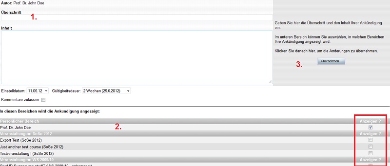 Anschließend können Sie entscheiden, in welchem Bereich Ihre Neuigkeit eingestellt werden soll. Dazu klicken Sie auf die kleinen Kästchen rechts.