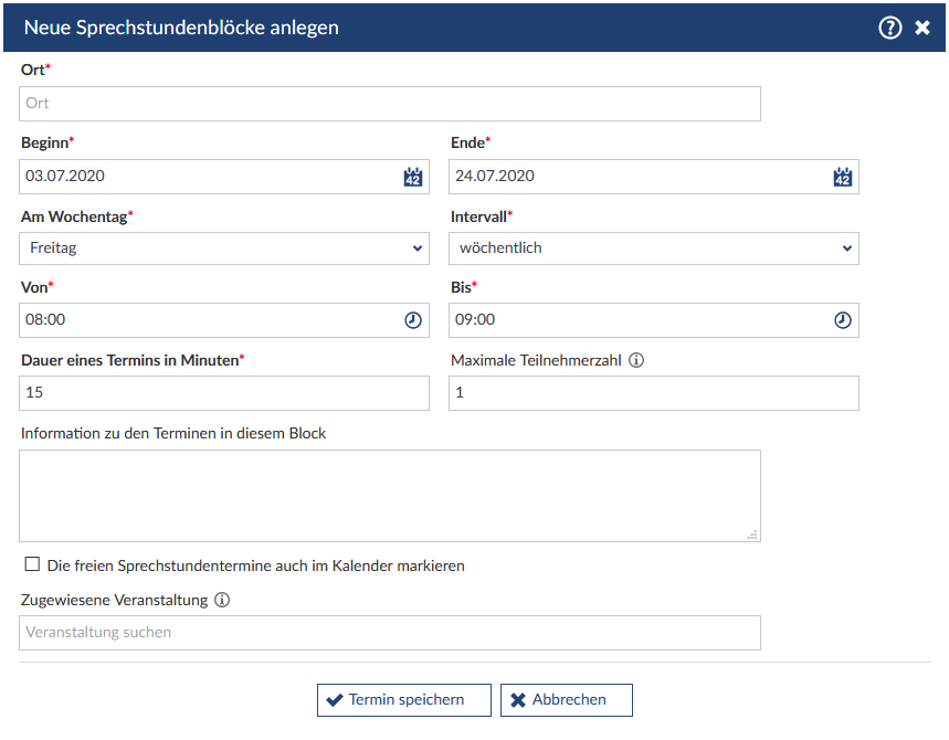 - Ende: An diesem Datum findet der letzte Sprechstundentermin statt.