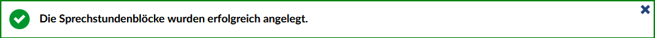 um den Sprechstundenblock anzulegen. Bei erfolgreicher Erstellung erscheint eine Systemmeldung.