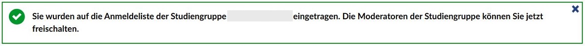 Solange Ihr Aufnahmewunsch noch nicht bestätigt ist, erscheint die Studiengruppe auf Ihrer Seite "Meine Veranstaltungen" unter "Anmelde- und Wartelisteneinträge".