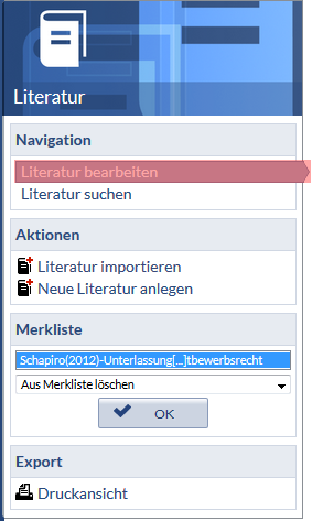 4. Klicken Sie auf den Link "Literatur bearbeiten".