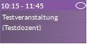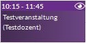 Sie können einzelne Veranstaltungseinträge auch ausblenden. Dies kann zum Beispiel nötig sein, wenn bei einer Veranstaltung die Termine mehrerer Übungsgruppen eingegeben wurden, Sie aber nur eine davon besuchen. Um in solchen Fällen trotzdem die Übersicht zu behalten, können Sie einen Veranstaltungseintrag durch einen Klick auf das "Augen"-Symbol