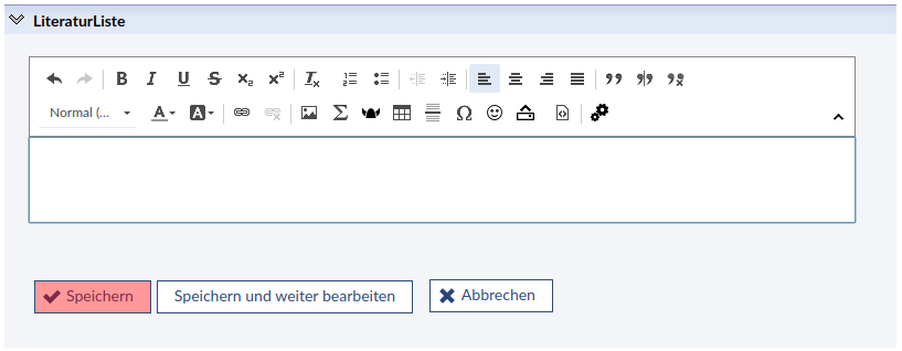 - Klicken Sie auf bearbeiten und geben Sie in das Eingabefeld den Namen einer Wikiseite ein, z.B. LiteraturListe und anschließen klicken Sie auf speichern.