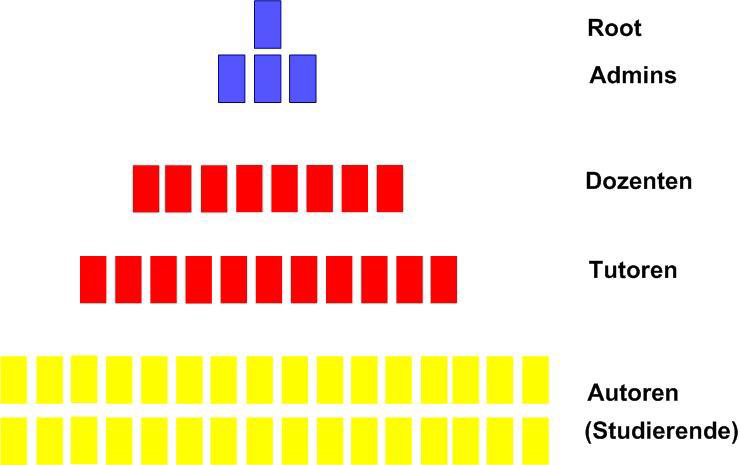 - Tutor: innerhalb bestimmter Veranstaltungen bestimmte Dozenten-Rechte, aber kein Anlegen von Veranstaltungen