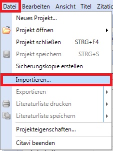 1. Choose within Citavi from the menu "data" the command "import".