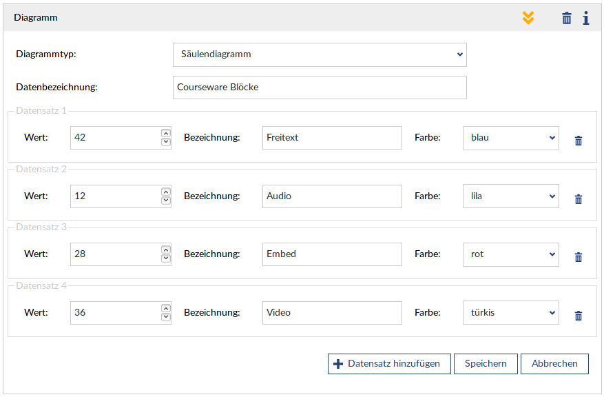 The diagram block can be used to easily create diagrams; these are animated when they are displayed.