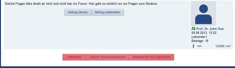 You can quote your own posts by clicking on “Beitrag zitieren”, edit them with “Beitrag bearbeiten”, delete them by clicking “Beitrag löschen” and forward them with “Beitrag weiterleiten”.