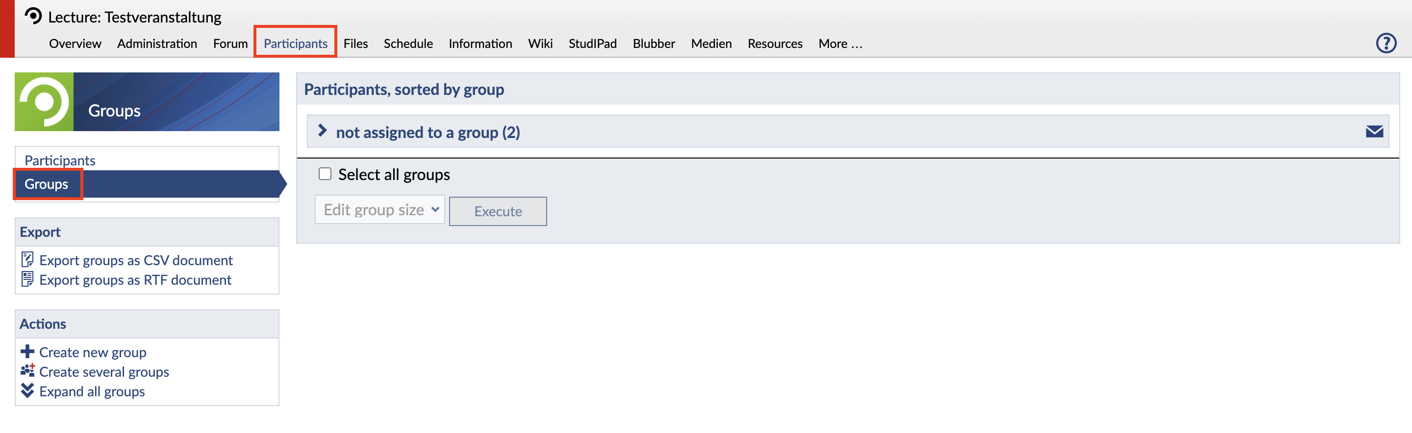In many situations it might be helpful to arrange the participants of a course or of an institution according to functions or groups. In a course this could be like this:
