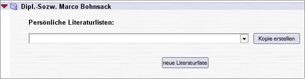 To set up a new reference list, click on the arrow next to your name. In the field, which has now unfolded, you see the following: