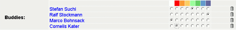 There you can assign colours to your buddies so that you can identify them more quickly or also delete individual buddies from the list. To perform the latter action, click on the respective Trash bin