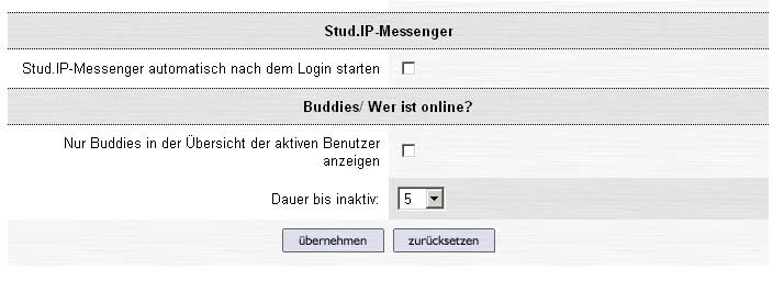 Here you can create your own settings for Stud.IP's Internal SMS and Messenger systems.