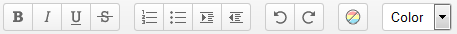 Mark your text within the text foeöd amd click on one of the simboles for formatting them. You can choose between B for bold, I for italic, U for underlined and S for crossed out on the left box. Within the second box you can create a numbered list or a bullet list or intend your text. You can reverse the latest change by clicking on . Afterwards you can repeat this change by clicking on . When your text should get a new color you can choose a color with the drop down menu on the right. Conclusiv there is a button to reverse all author colors (). With that you can delete the color legend of all authors of the text. The marked text will subsequently colored white.