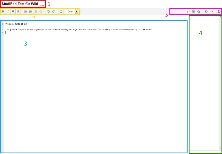 1. Titel of the StudIPad Every participant can change the StudIPads title by clicking on "Edit".