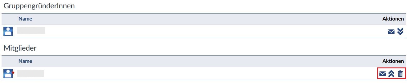With the bin symbol within the action menu of every person you can delete that person from the group. You will get a confirmation message if you really want to delete that person from the study group. By clicking on "Yes" you delet that member and by clicking on "No" the process is stoped.